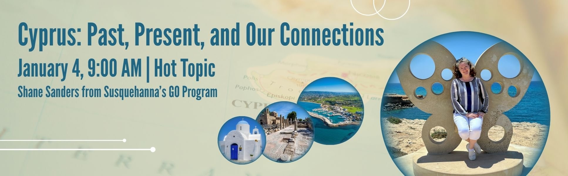 Join us on January 4 at 9:00 AM for a fascinating look at the rich history of the Mediterranean island of Cyprus and learn how St. Paul’s own Shane Sanders (Assistant Director of SU’s GO Program) experienced this unique culture firsthand. Get an update on Susquehanna University’s GO Requirement while discovering how it facilitates connections to Cyprus for students through various program options, virtual exchanges, and even an MBA 4+1 partnership. This one-hour session blends history, travel, and the exciting ways our community is building global relationships. Don’t miss it!