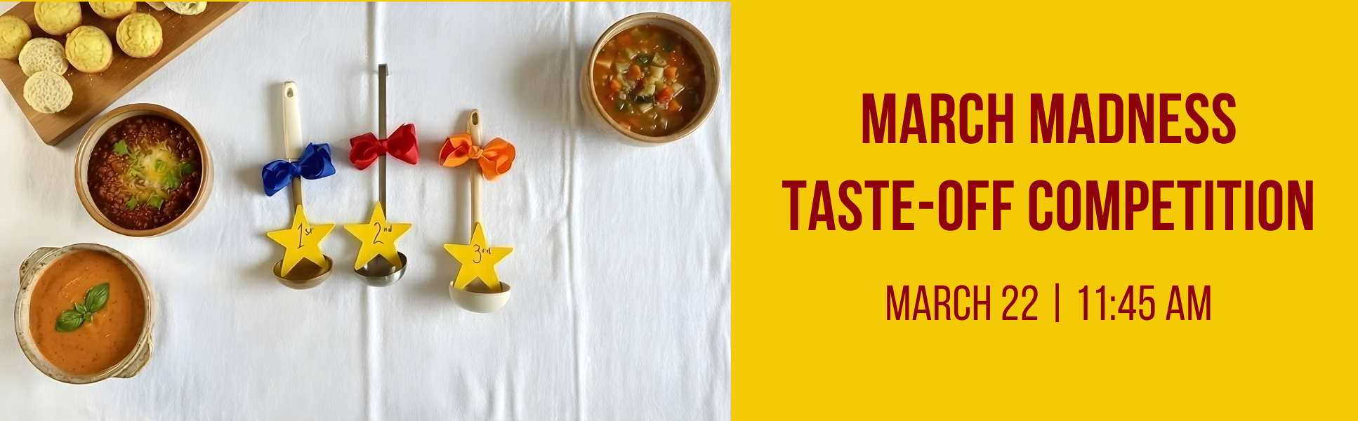 Attention all soup and chili makers! The March 22 Meet and Eat will be a March Madness Taste-Off Competition!