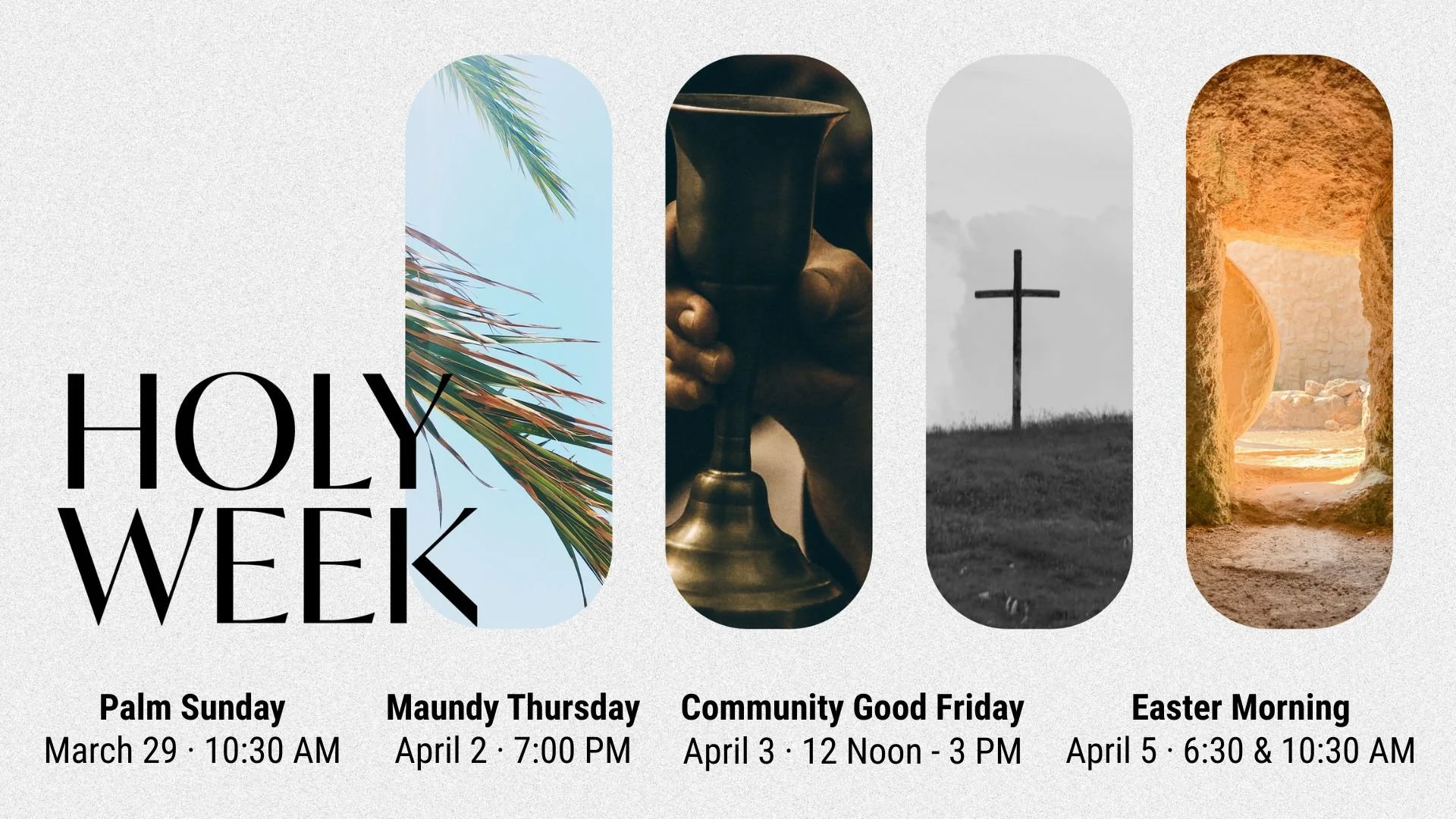 Holy Week is the most sacred week in the Christian calendar — a journey from Jesus' triumphant entry into Jerusalem to the joy of Easter morning. Whether you've been part of our community for years or are joining us for the first time, you are welcome here.
