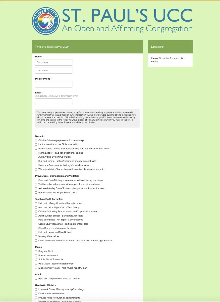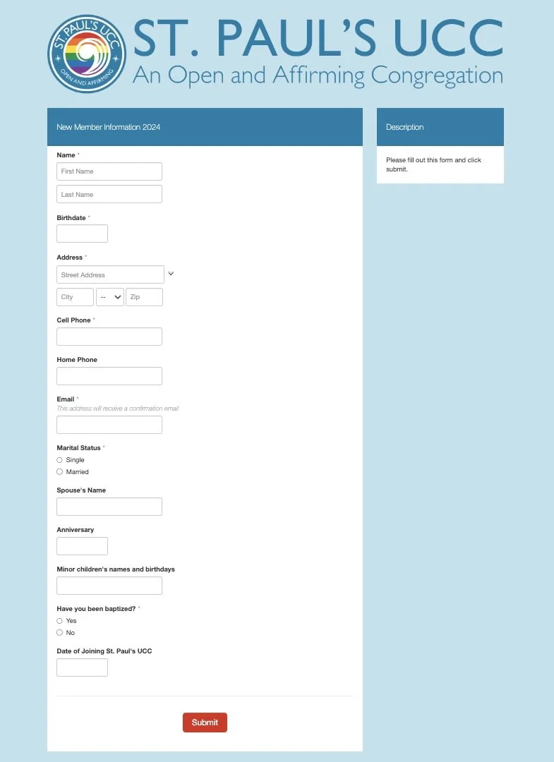 Read our New Members Orientation booklet Fill out our Time and Talent Survey form Fill out our New Member Information online form